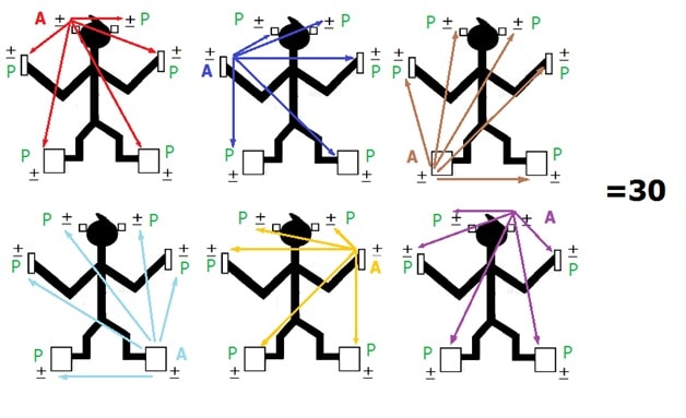 In the standard automatic mode testing, 9 measurement cycles (inquiries) with 30 measurements on electrode pairs are conducted. Every measurement makes  a measurement load for the next one. One measurement takes 2 seconds, a cycle takes 1 minute.