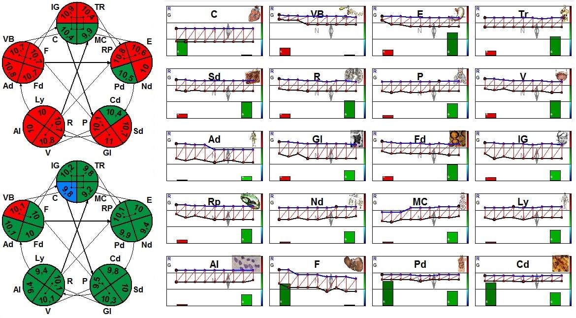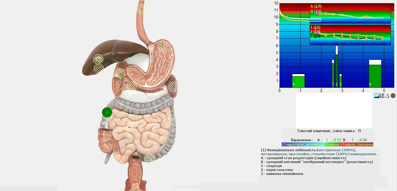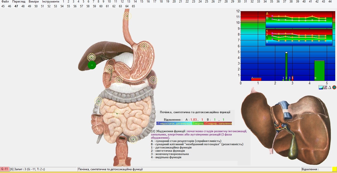 • Identifying both a body intoxication degree in general and every organ individually, toxic load type, and activity level of drainage systems.
