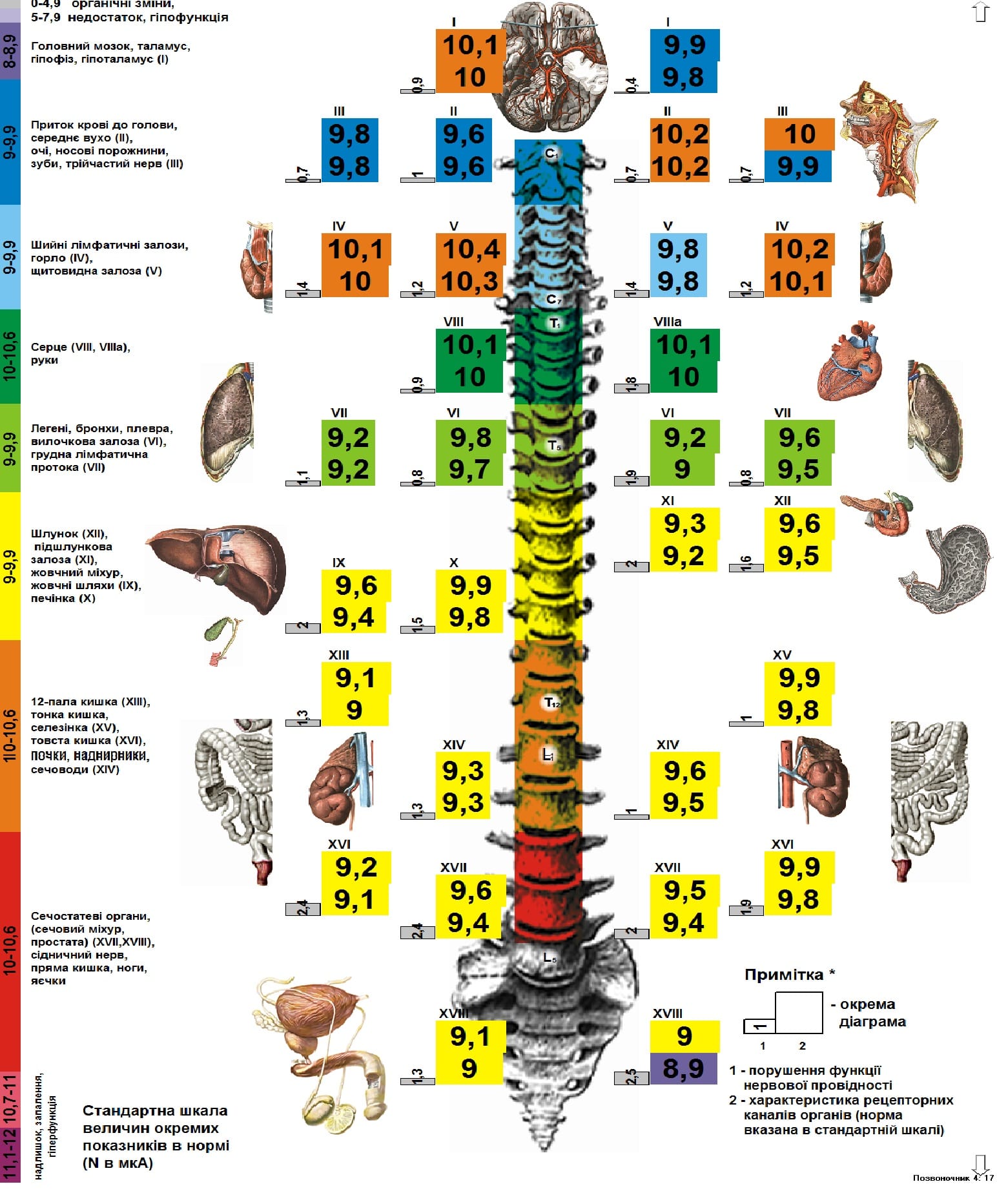 The method is based on a certain interconnection between the state of the internal organs & systems and the skin resulting from the metameric structure of a human body.